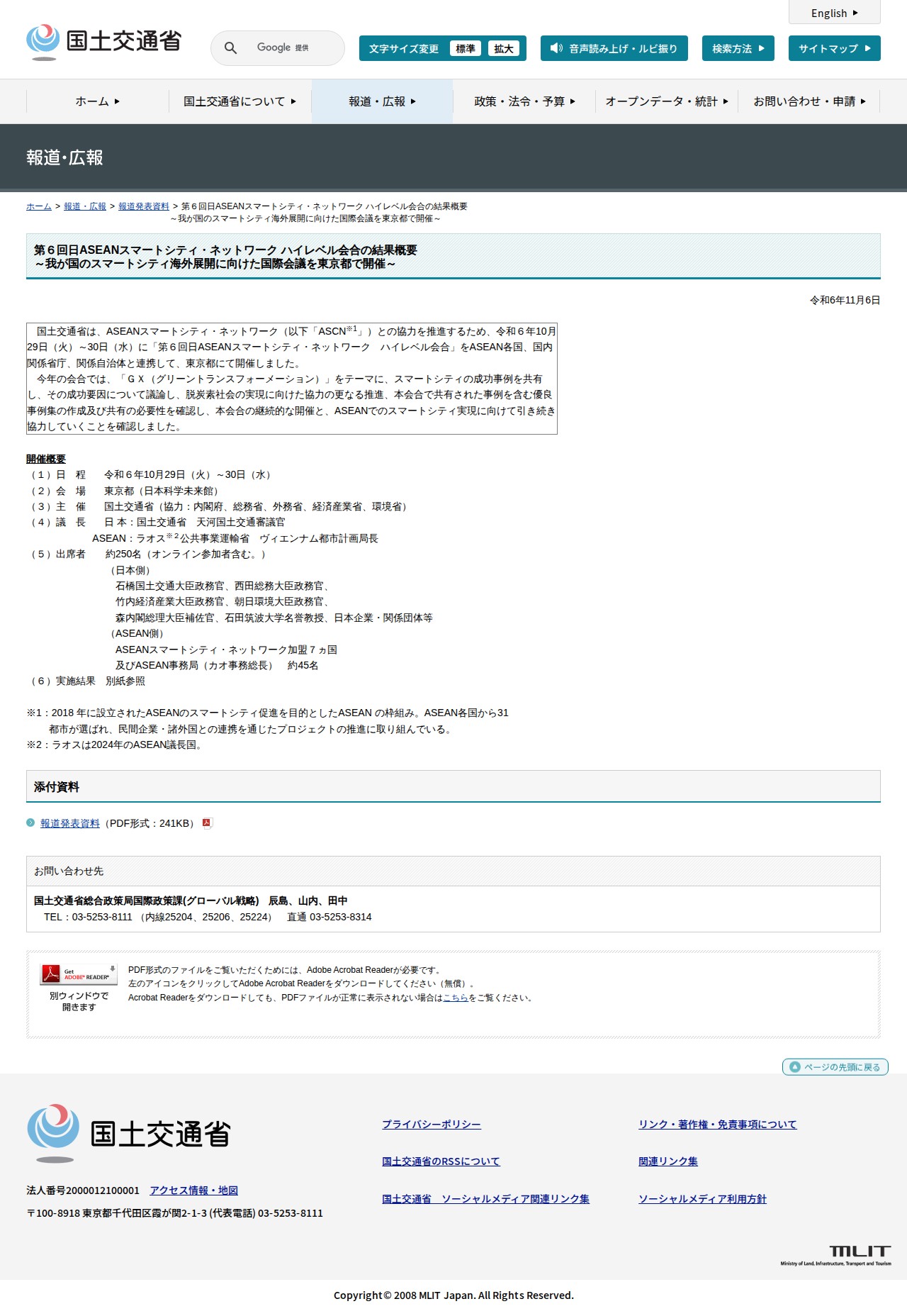報道発表資料:第6回日ASEANスマートシティ・ネットワーク ハイレベル会合の結果概要<br>~我が国のスマートシティ海外展開に向けた国際会議を東京都で開催~ - 国土交通省