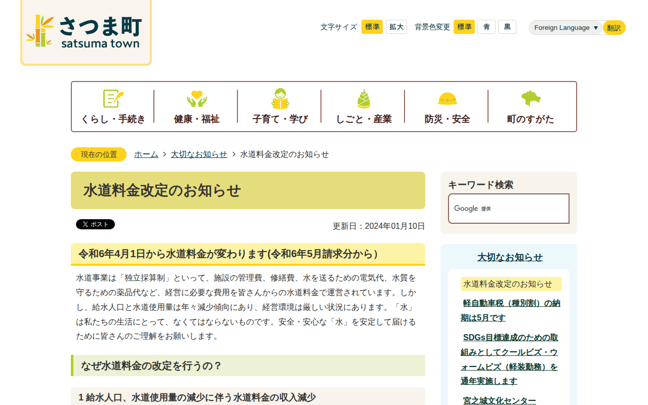 水道料金改定のお知らせ/さつま町公式ホームページ
