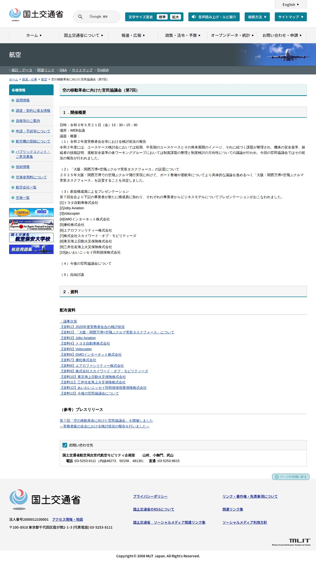 航空:空の移動革命に向けた官民協議会(第7回) - 国土交通省 - 保存されたスクリーンショット