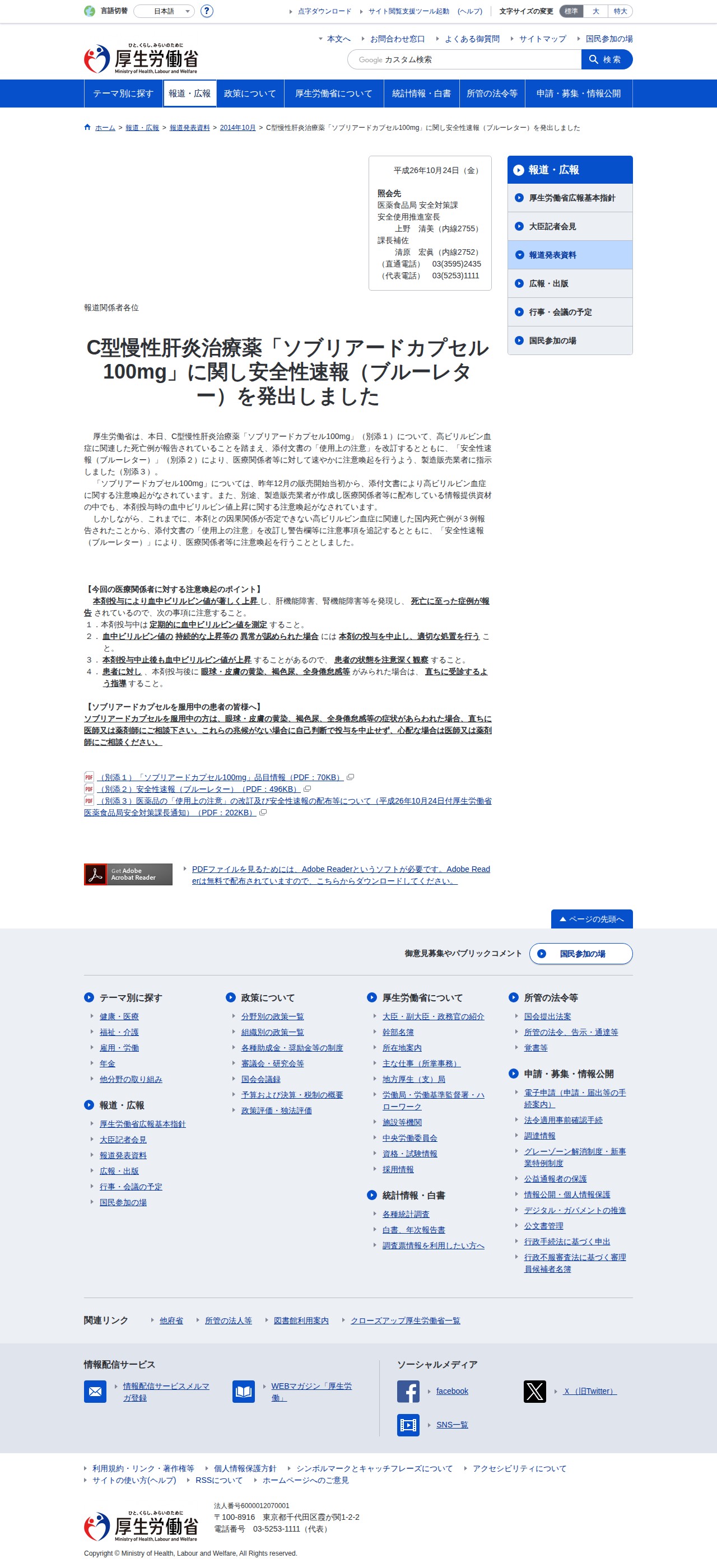 C型慢性肝炎治療薬「ソブリアードカプセル100mg」に関し安全性速報(ブルーレター)を発出しました|厚生労働省