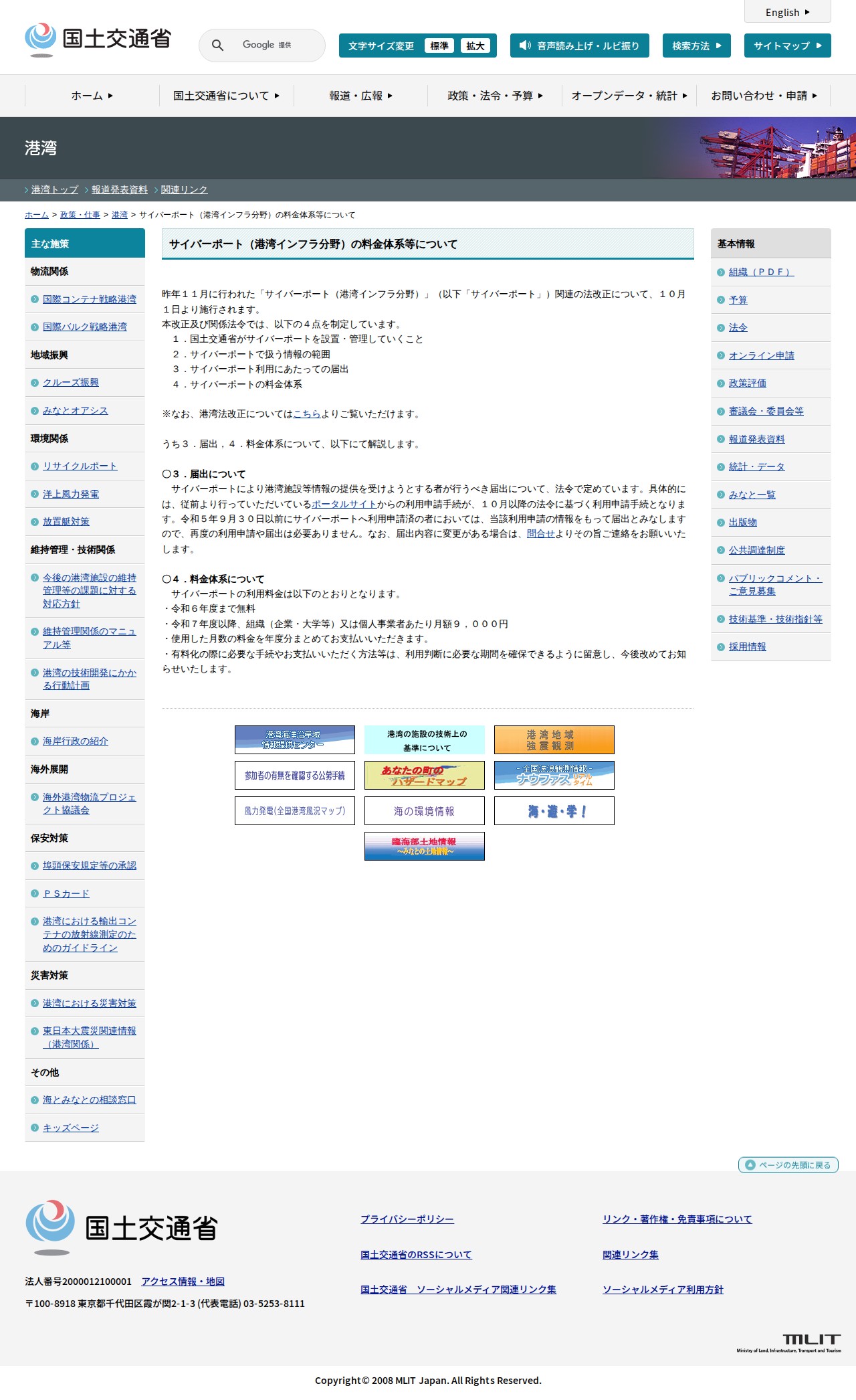 港湾:サイバーポート(港湾インフラ分野)の料金体系等について - 国土交通省 - 保存されたスクリーンショット