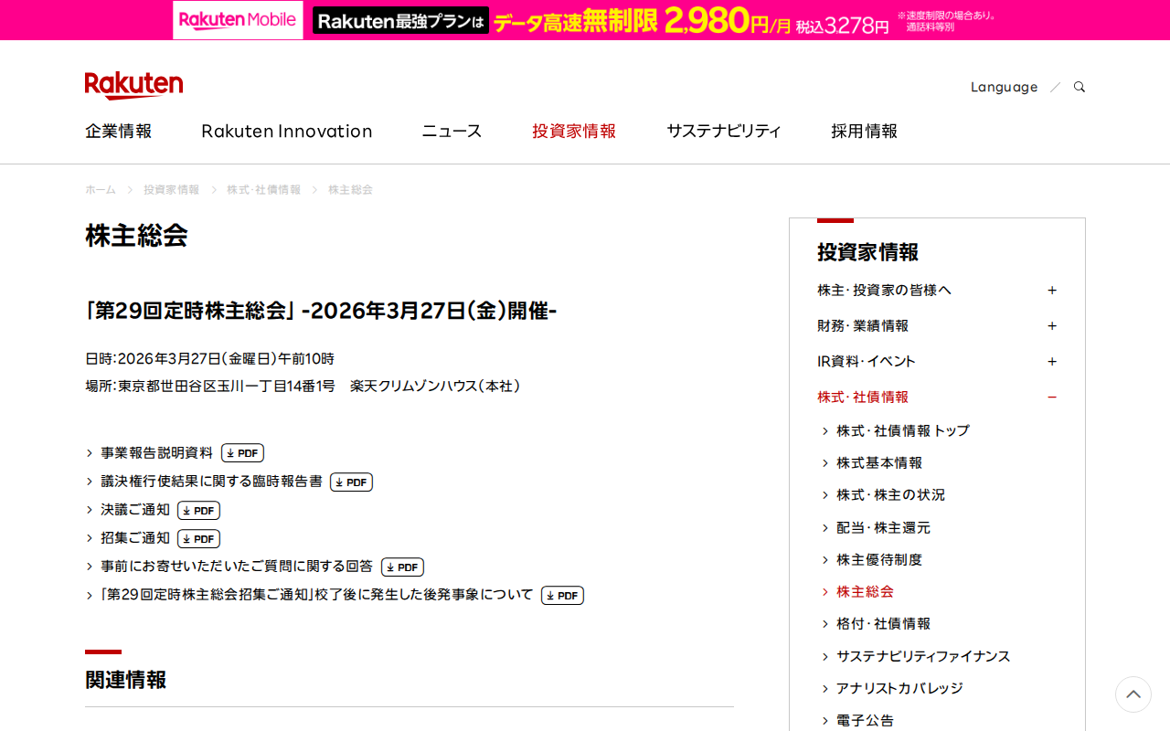 株主総会|楽天グループ株式会社 - 保存されたスクリーンショット