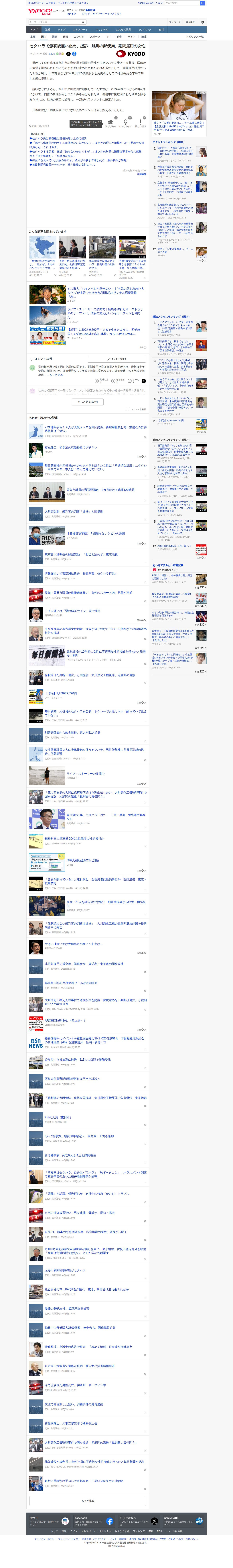 このページは、北海道旭川市の郵便局でセクハラを受けた期間雇用社員の女性が、療養後に医師から復帰を認められたにもかかわらず雇い止めにされたことに対して、日本郵便を相手に損害賠償400万円と労働者としての地位確認を求めて提訴したニュースを伝えています。女性は2024年秋から2025年2月にかけて、同僚男性からしつこく声をかけられたり体を触られたりし、社内窓口に通報した結果、一部がハラスメントと認定されています。