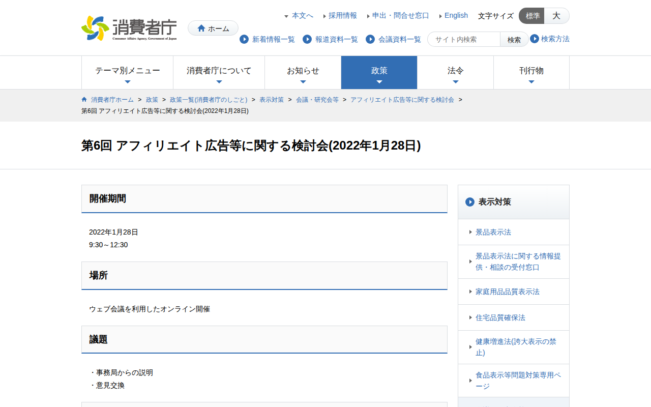 第6回 アフィリエイト広告等に関する検討会(2022年1月28日) | 消費者庁