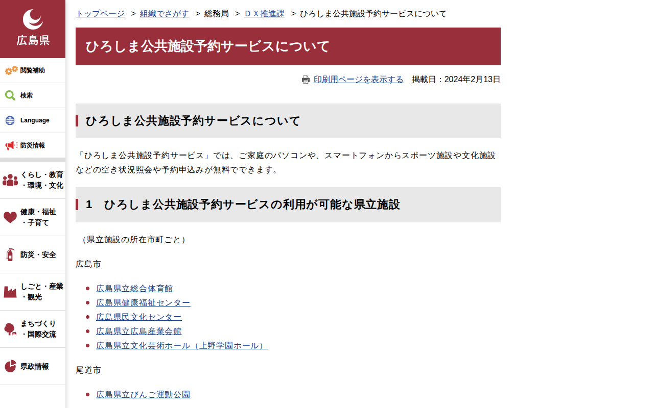 ひろしま公共施設予約サービスについて | 広島県