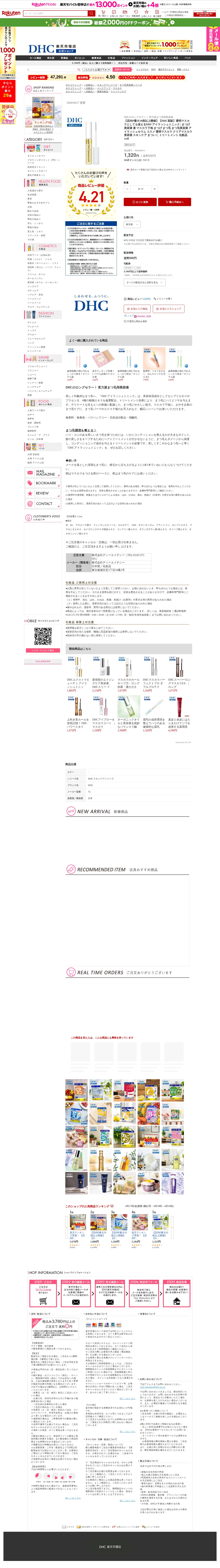 【楽天市場】【店内P最大18倍以上開催】【DHC直販】透明マスカラとしても使えるDHCアイラッシュトニック | まつげ美容液 液 マスカラ下地 まつげ まつ毛 まつ毛美容液 アイラッシュセラム コスメ 透明マスカラ クリアマスカラ 美容液 スキンケア まついく トリートメント 化粧品 well:DHC楽天市場店 - 保存されたスクリーンショット