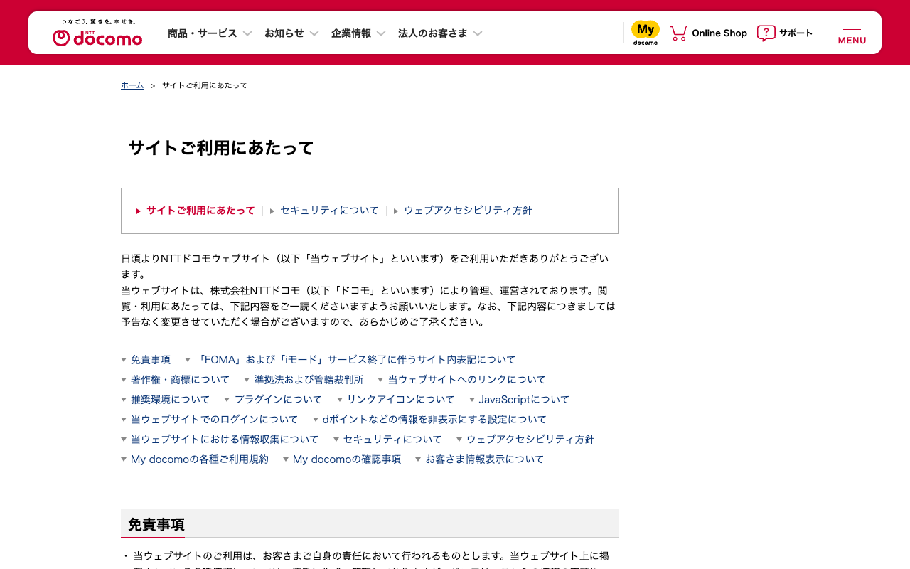 サイトご利用にあたって | NTTドコモ