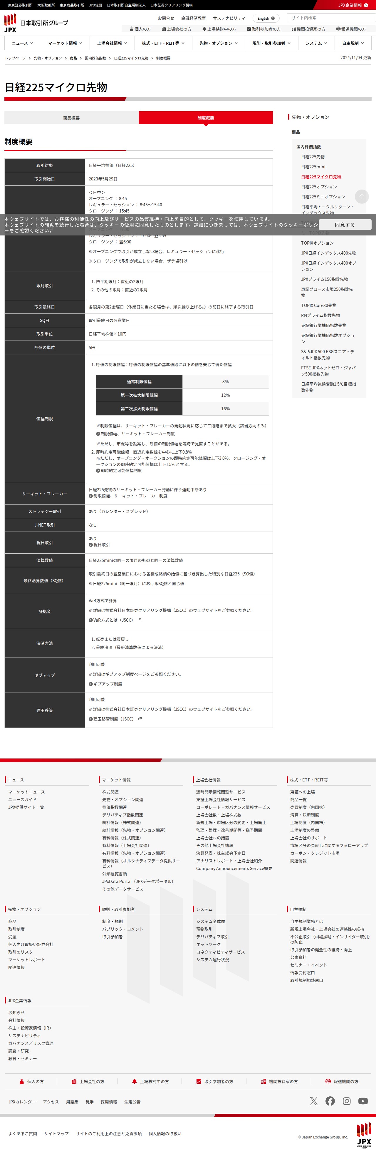 制度概要 | 日経225マイクロ先物 | 日本取引所グループ - 保存されたスクリーンショット