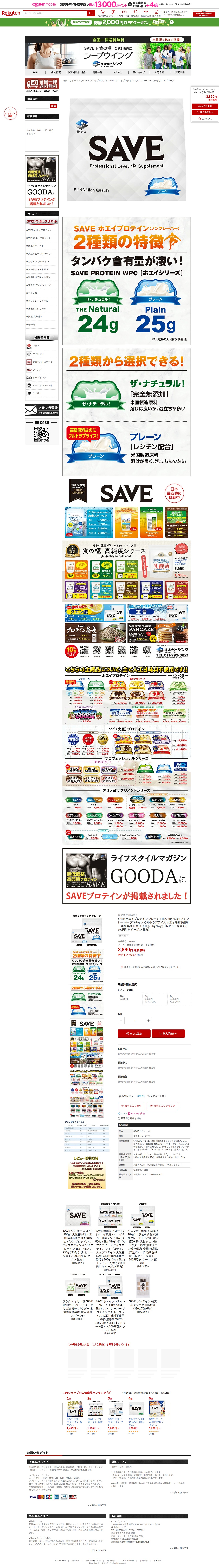 【楽天市場】SAVE ホエイプロテイン プレーン ( 1kg / 3kg / 5kg ) ノンフレーバー プロテイン ウルトラプライス 人工甘味料不使用 ・香料 無添加 WPC ( 1kg / 3kg / 5kg )【レビューを書くと300円引き クーポン 配布】:シープウィング - 保存されたスクリーンショット
