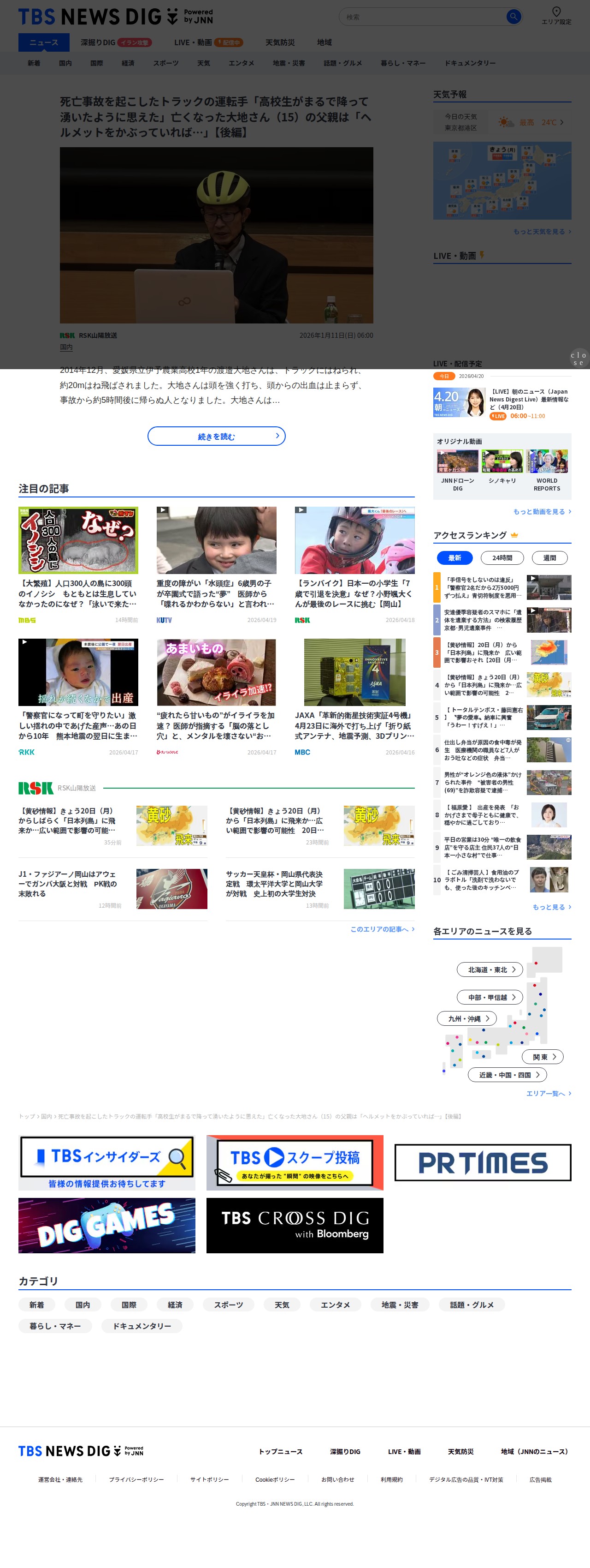死亡事故を起こしたトラックの運転手「高校生がまるで降って湧いたように思えた」亡くなった大地さん(15)の父親は「ヘルメットをかぶっていれば…」【後編】 | TBS NEWS DIG
