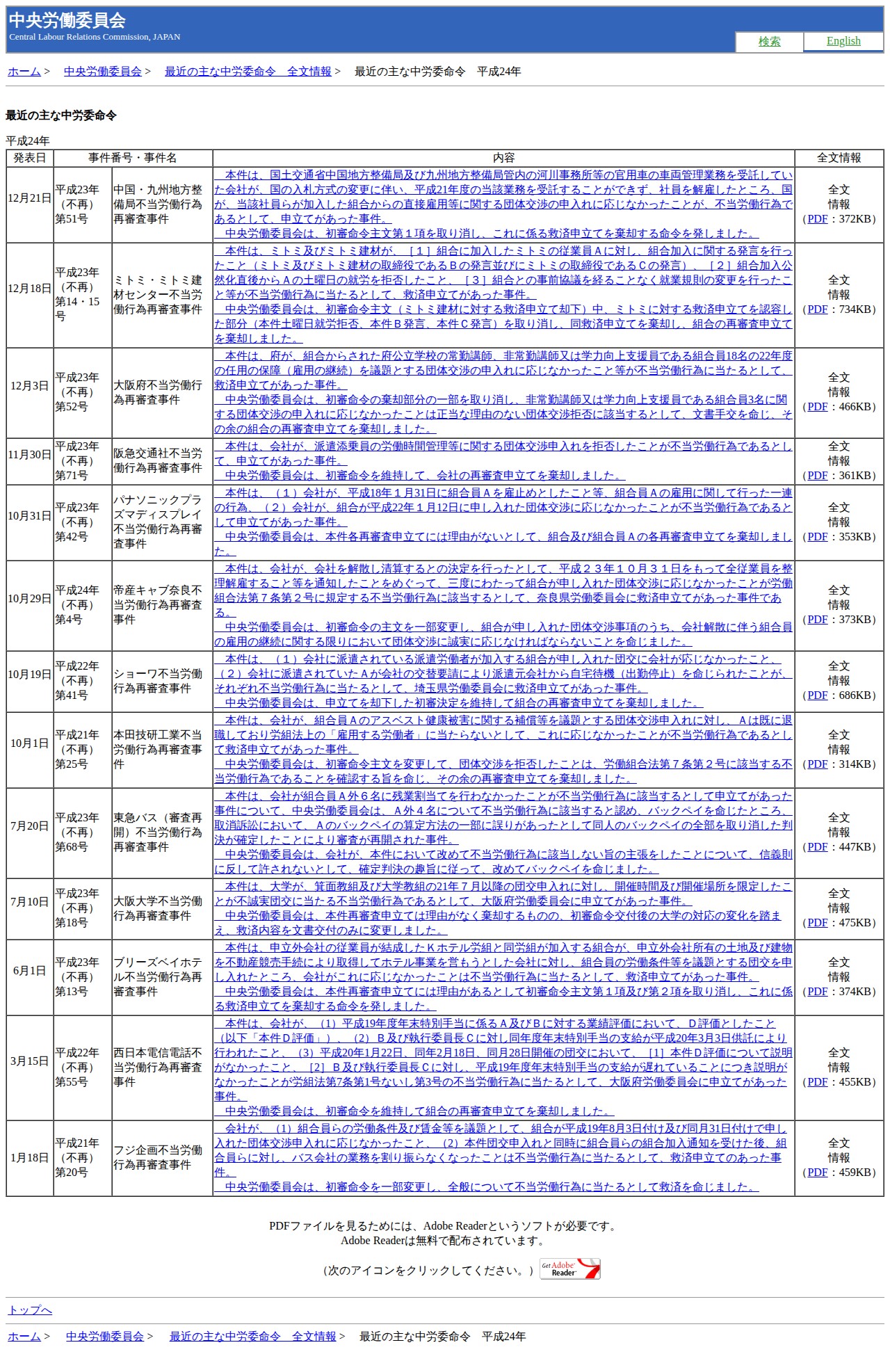 最近の主な中労委命令 平成24年|厚生労働省