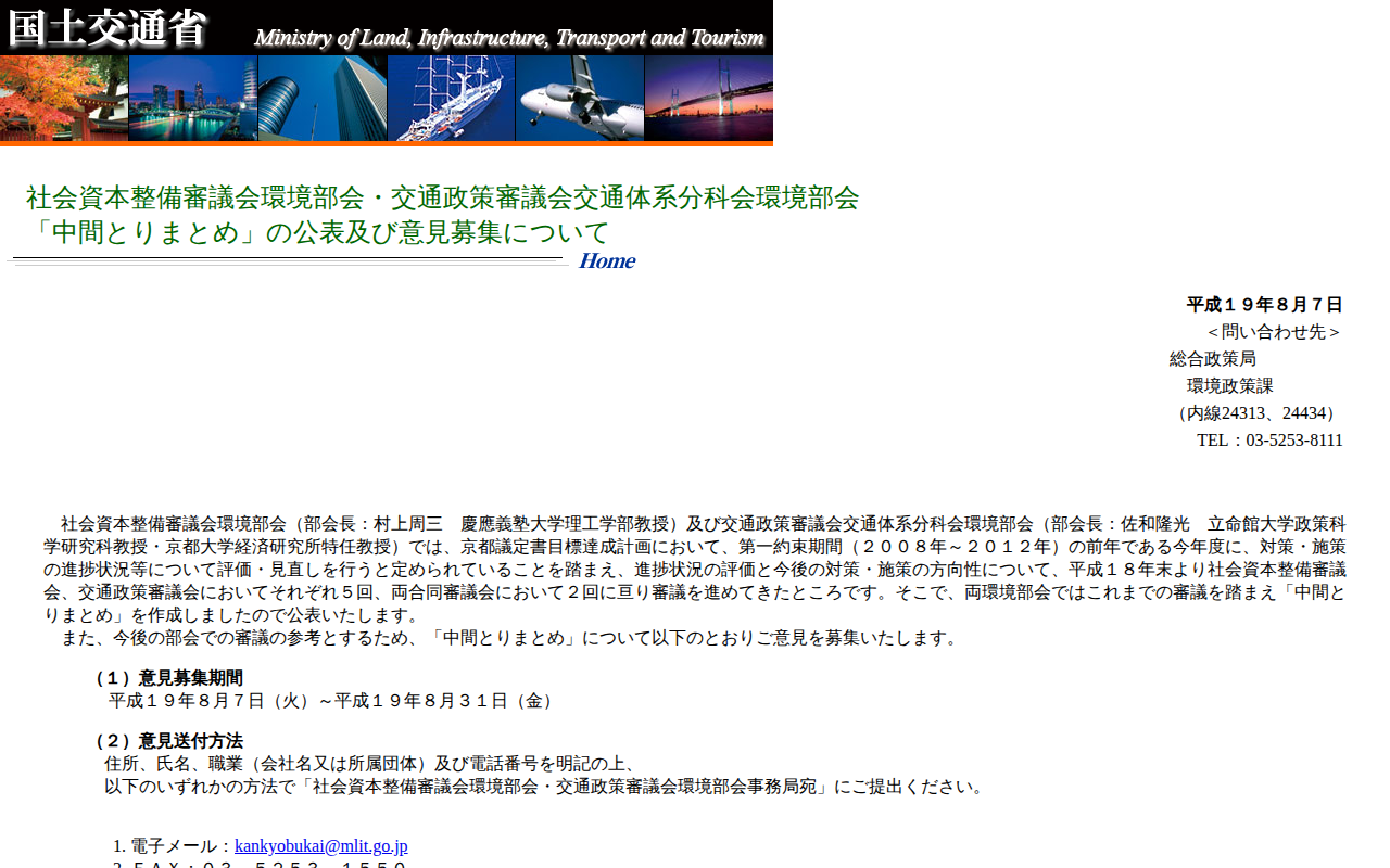 社会資本整備審議会環境部会・交通政策審議会交通体系分科会環境部会 「中間とりまとめ」の公表及び意見募集について - 保存されたスクリーンショット