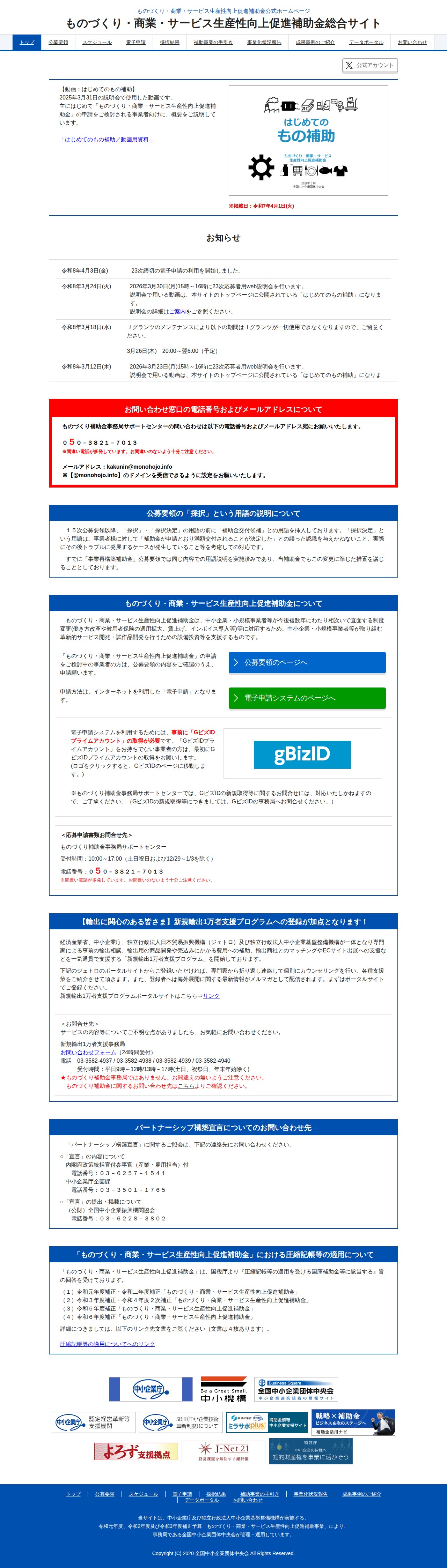 トップページ|ものづくり・商業・サービス生産性向上促進補助金公式ホームページ ものづくり・商業・サービス生産性向上促進補助金総合サイト - 保存されたスクリーンショット