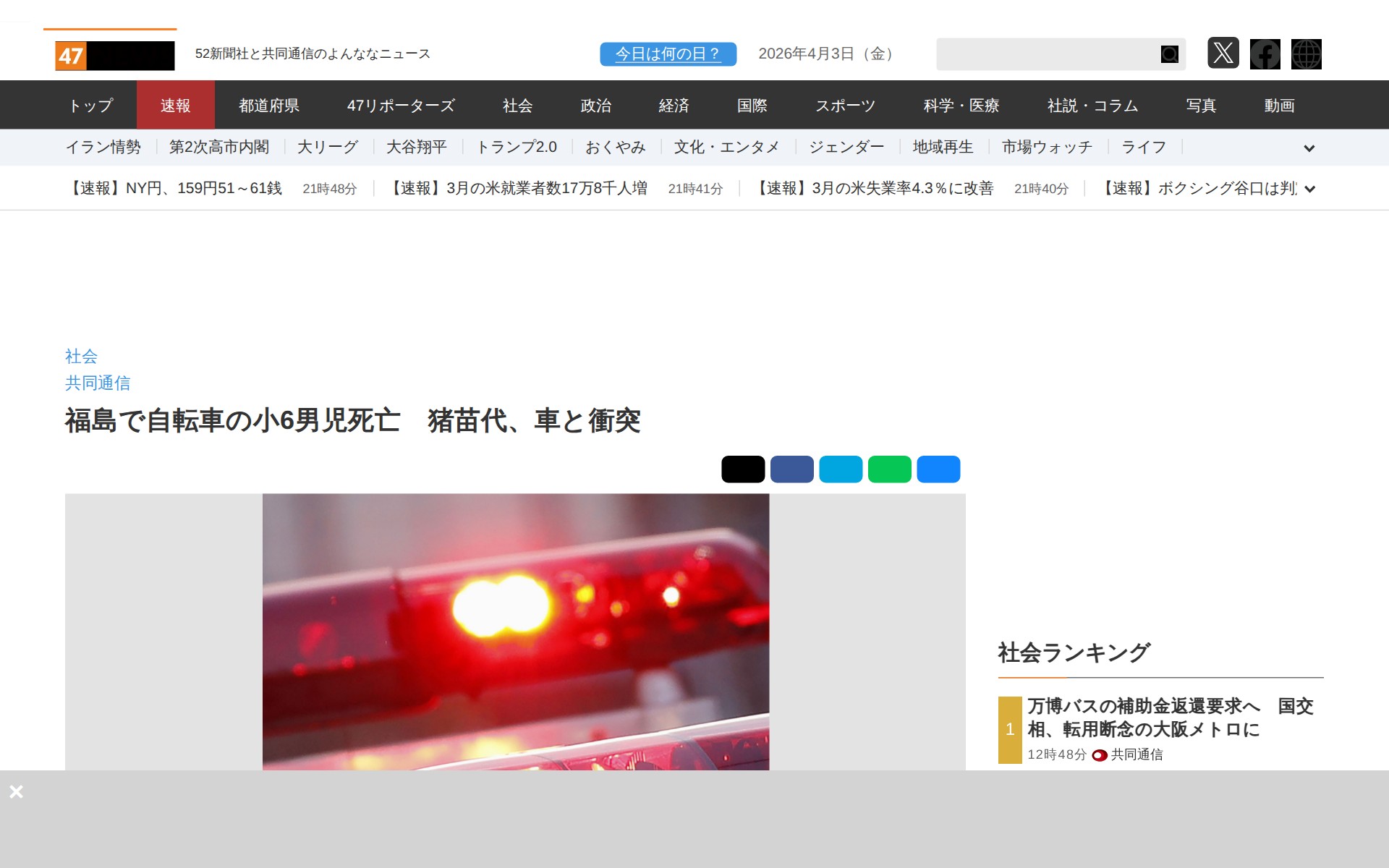 福島で自転車の小6男児死亡 猪苗代、車と衝突|47NEWS(よんななニュース)