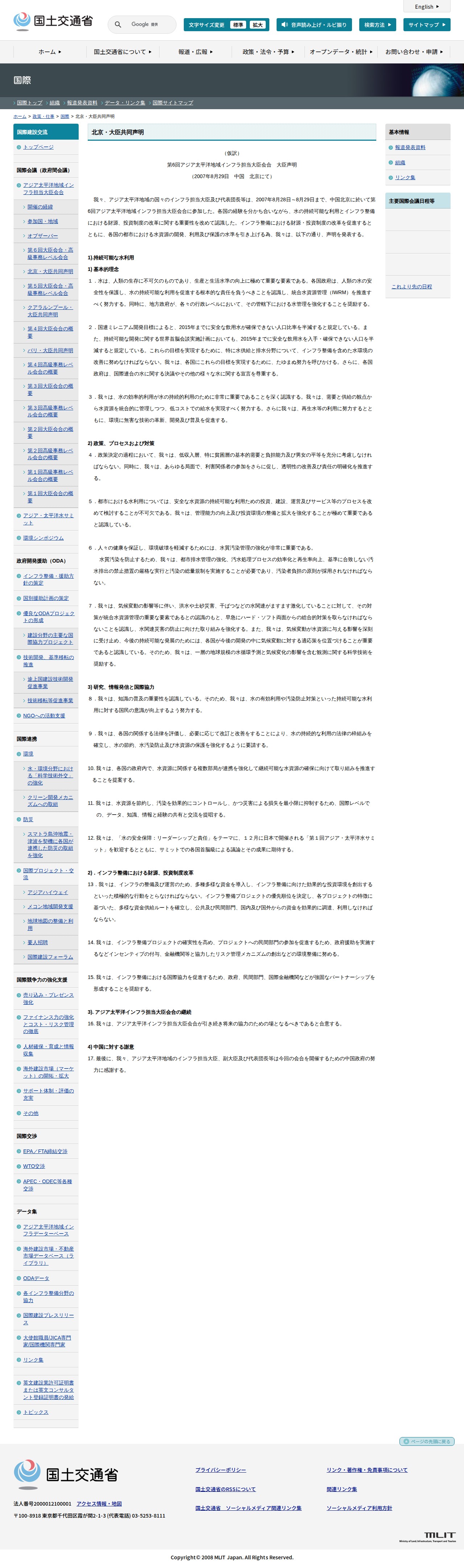 国際:北京・大臣共同声明 - 国土交通省