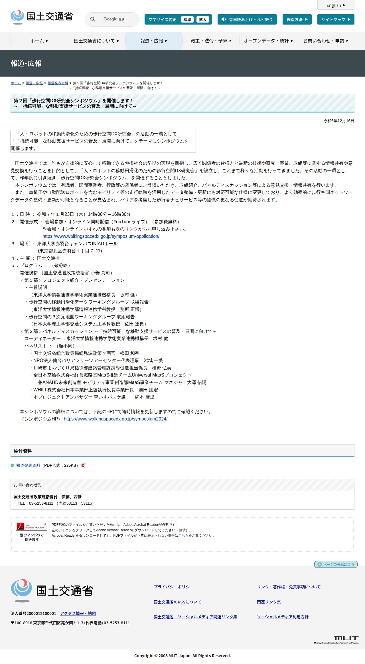 報道発表資料:第2回「歩行空間DX研究会シンポジウム」を開催します!<br>~「持続可能」な移動支援サービスの普及・展開に向けて~ - 国土交通省