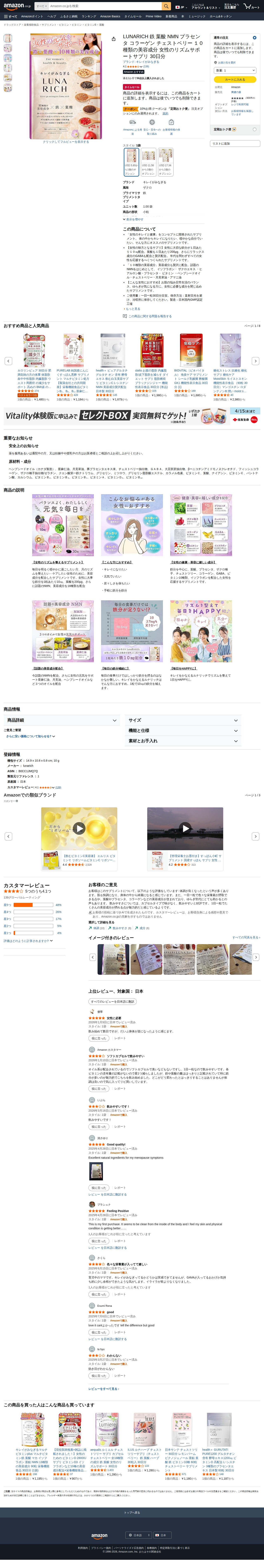 Amazon | キレイがみなぎる LUNARICH 鉄 葉酸 NMN プラセンタ コラーゲン チェストベリー 10種類の美容成分 女性のリズムサポートサプリ 30日分 | キレイがみなぎる | 葉酸 - 保存されたスクリーンショット