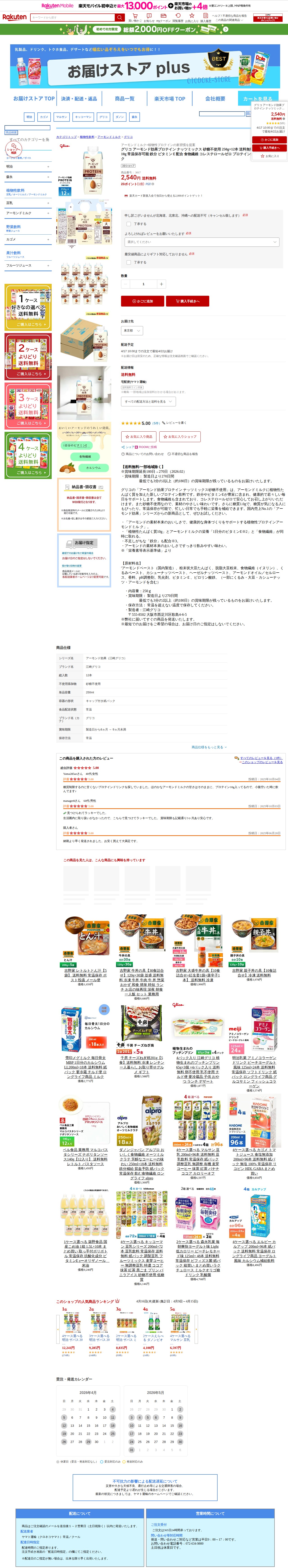 【楽天市場】グリコ アーモンド効果プロテイン ナッツミックス 砂糖不使用 250g×12本 送料無料 植物性たんぱく質10g 常温保存可能 鉄分 ビタミンE配合 食物繊維 コレステロールゼロ プロテイン飲料 アーモンドミルク:お届けストアplus - 保存されたスクリーンショット