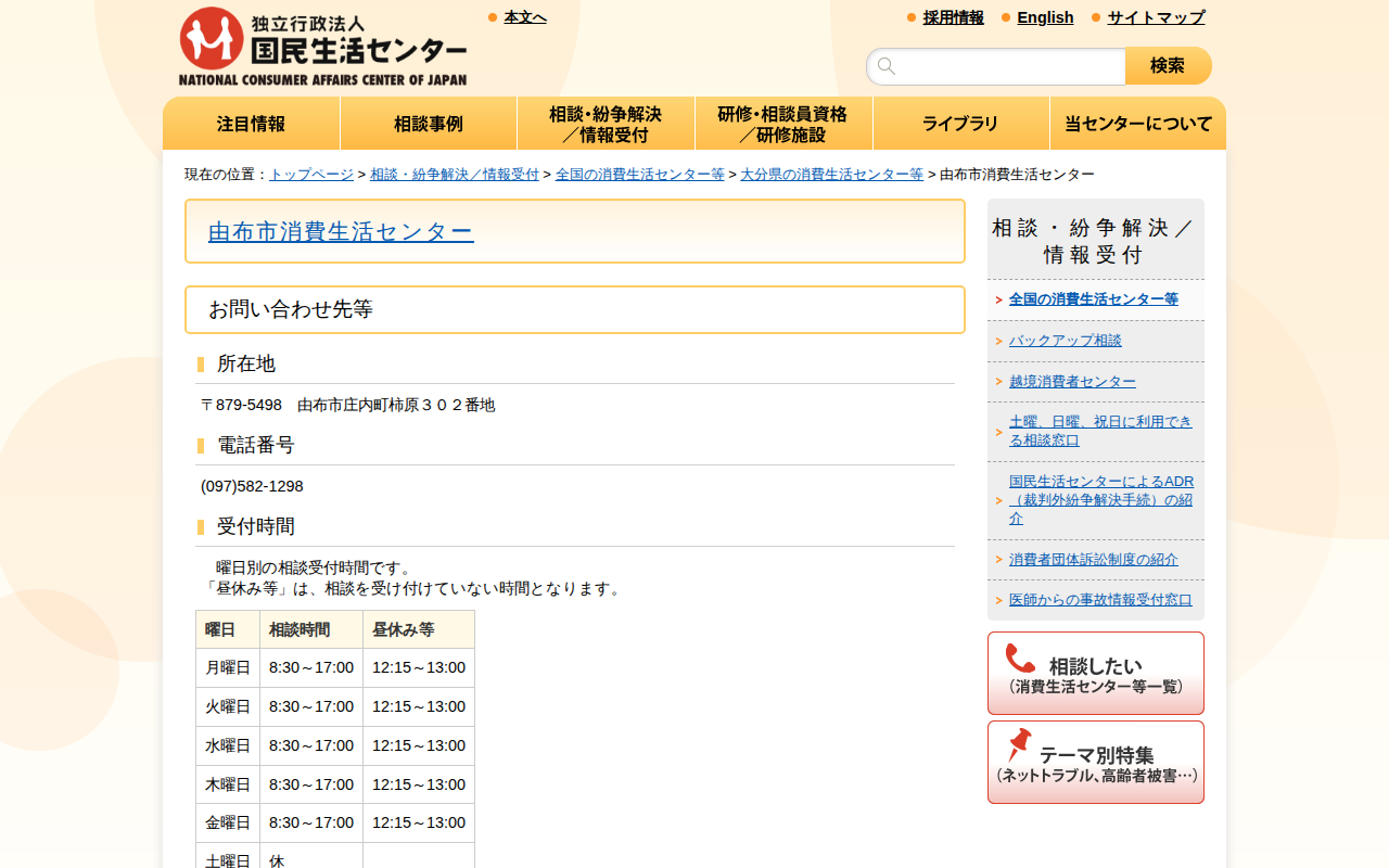 由布市消費生活センター(全国の消費生活センター等)_国民生活センター