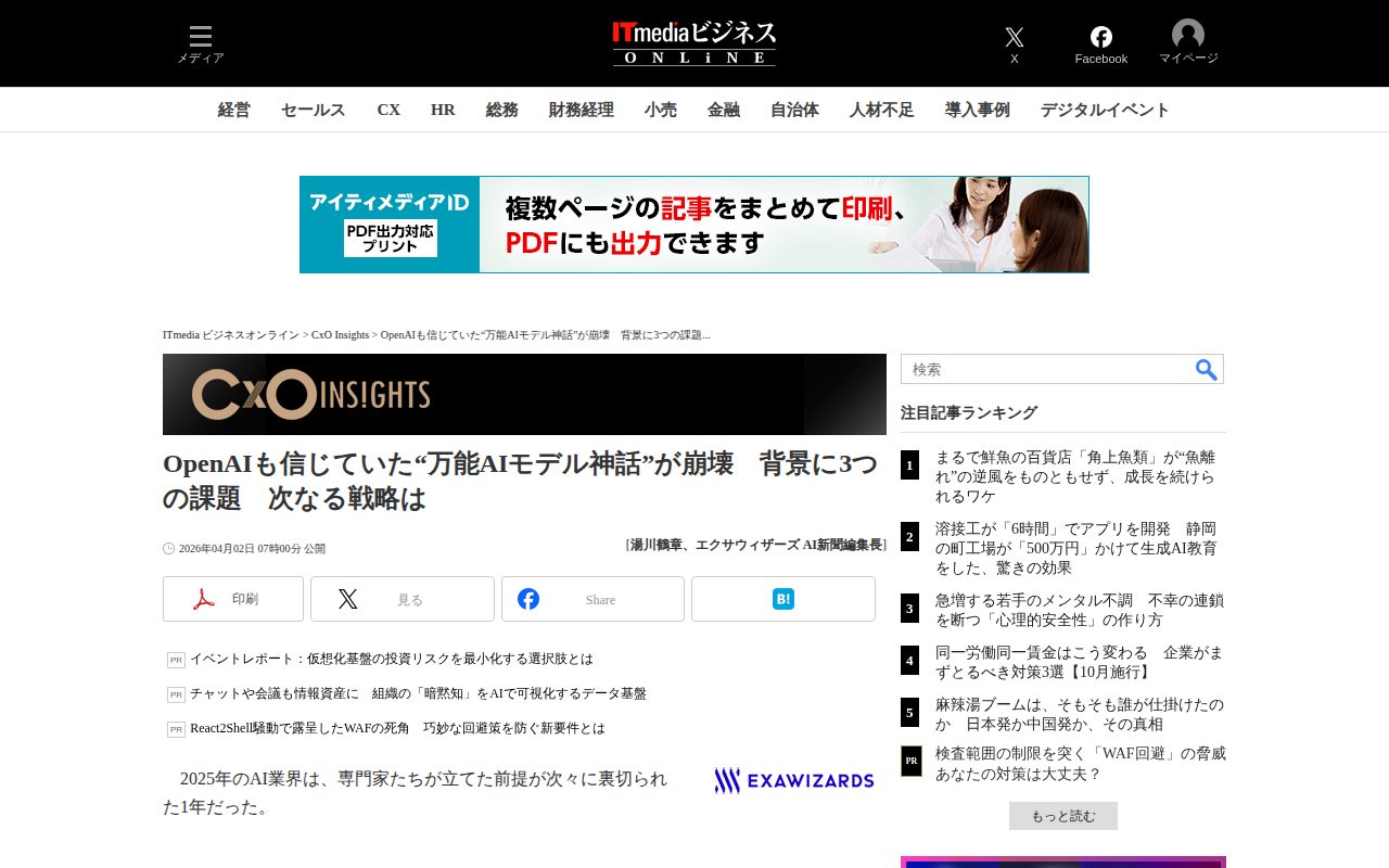 OpenAIも信じていた“万能AIモデル神話”が崩壊 背景に3つの課題 次なる戦略は - ITmedia ビジネスオンライン