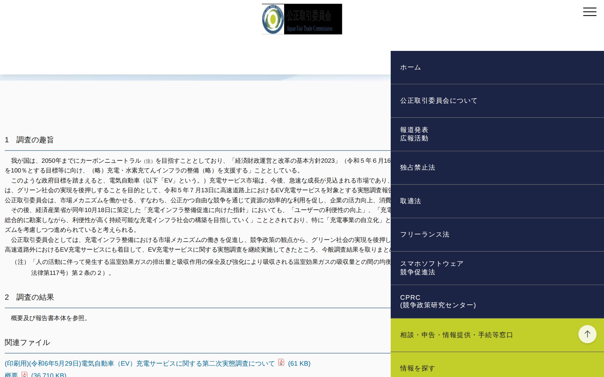 (令和6年5月29日)電気自動車(EV)充電サービスに関する第二次実態調査について | 公正取引委員会 - 保存されたスクリーンショット