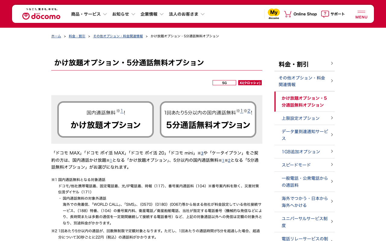 かけ放題オプション・5分通話無料オプション | 料金・割引 | NTTドコモ