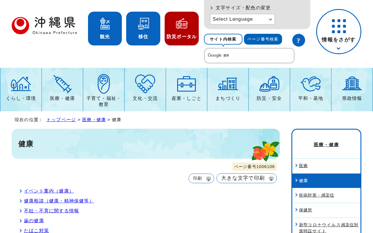 健康|沖縄県公式ホームページ - 保存されたスクリーンショット