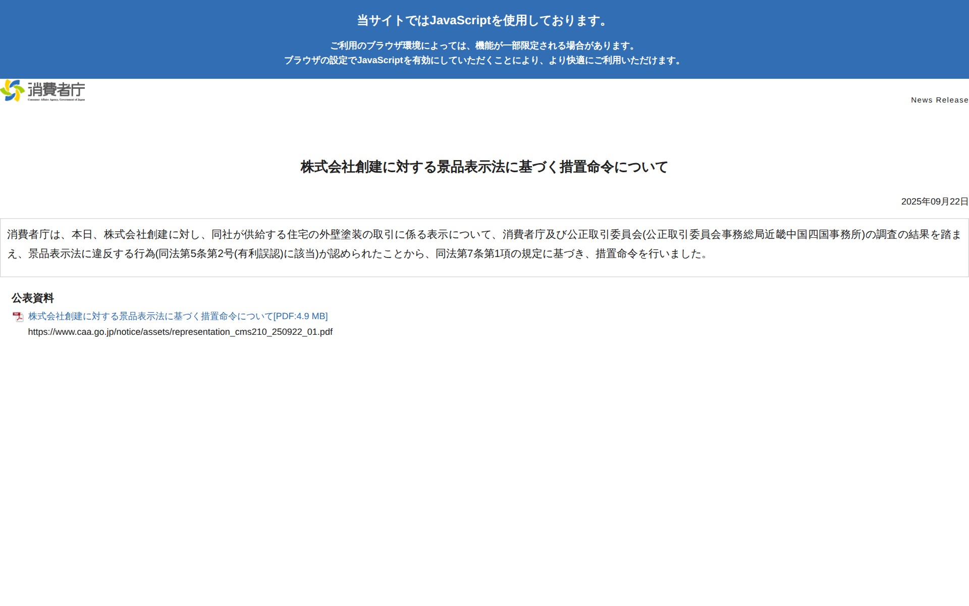 株式会社創建に対する景品表示法に基づく措置命令について | 消費者庁
