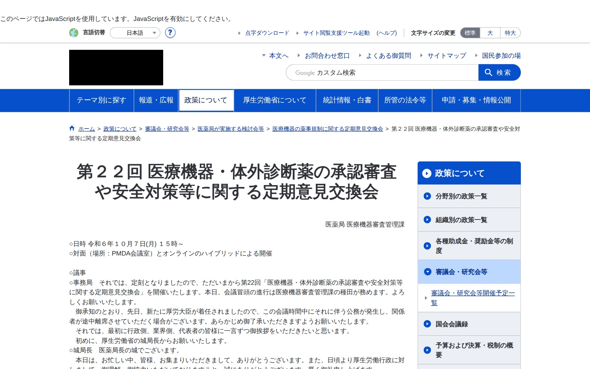 第22回 医療機器・体外診断薬の承認審査や安全対策等に関する定期意見交換会 議事録 |厚生労働省
