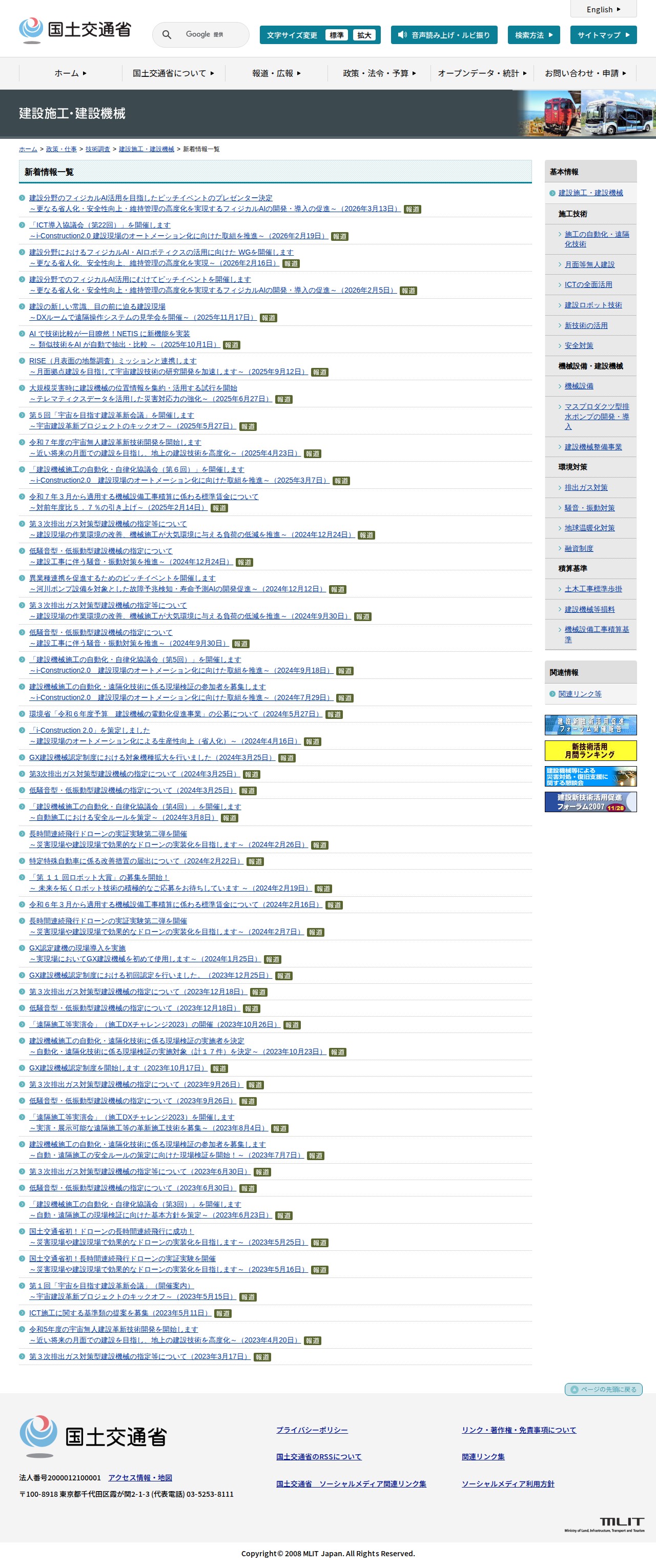 建設施工・建設機械:新着情報一覧 - 国土交通省 - 保存されたスクリーンショット