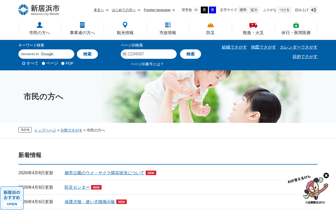 市民の方へ - 愛媛県新居浜市ホームページ|四国屈指の臨海工業都市