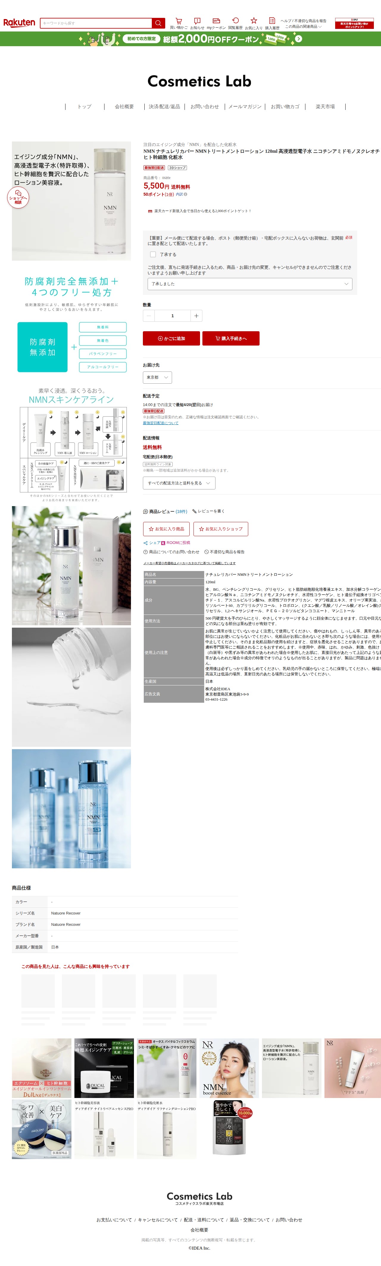 【楽天市場】NMN ナチュレリカバー NMNトリートメントローション 120ml 高浸透型電子水 ニコチンアミドモノヌクレオチド ヒト幹細胞 化粧水:コスメティクスラボ