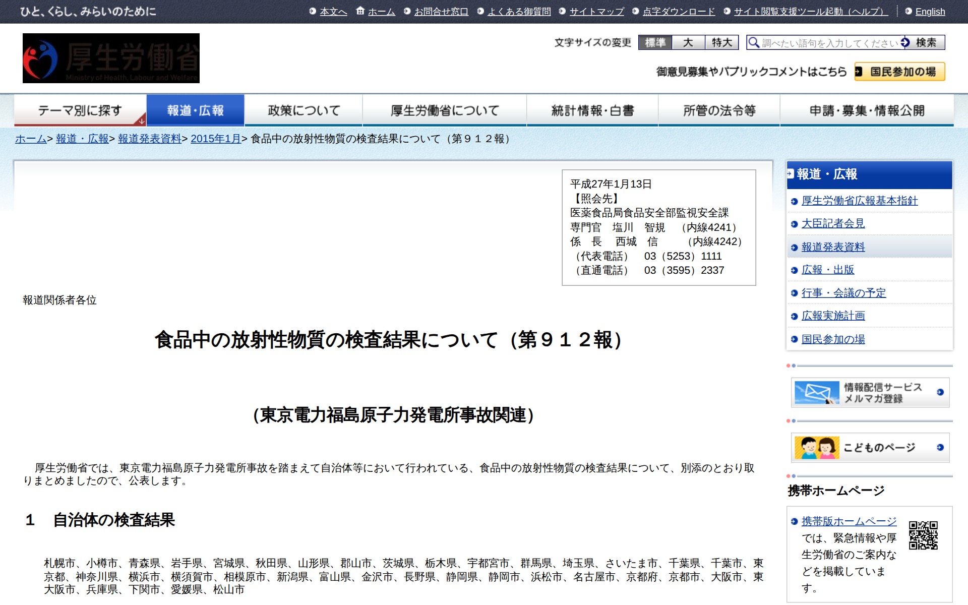 食品中の放射性物質の検査結果について(第912報) |報道発表資料|厚生労働省