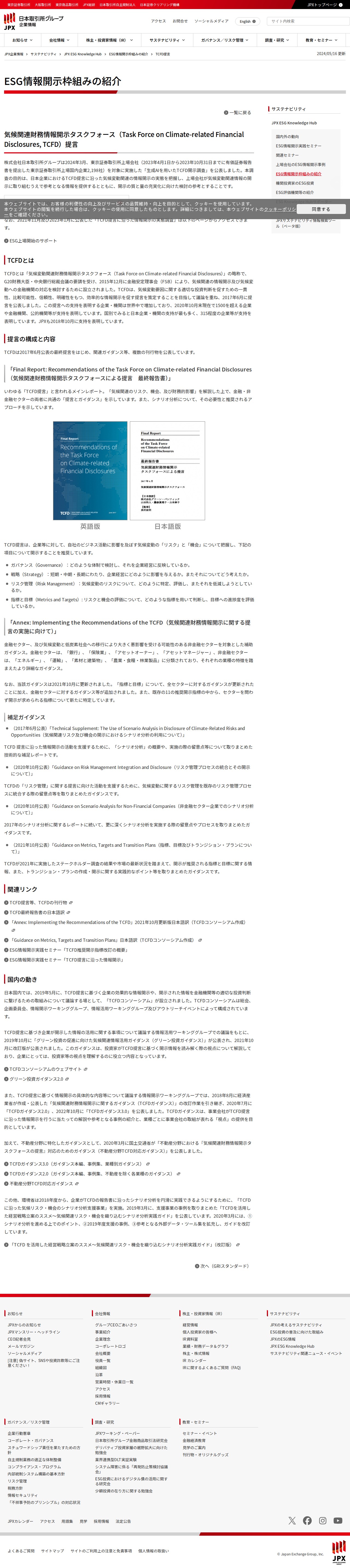 TCFD提言 | ESG情報開示枠組みの紹介 | JPX ESG Knowledge Hub | 日本取引所グループ - 保存されたスクリーンショット