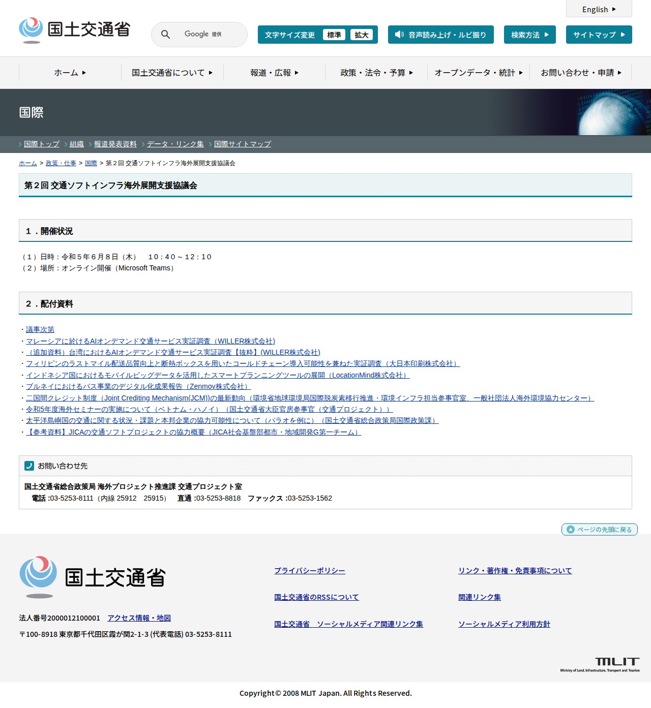 国際:第2回 交通ソフトインフラ海外展開支援協議会 - 国土交通省 - 保存されたスクリーンショット