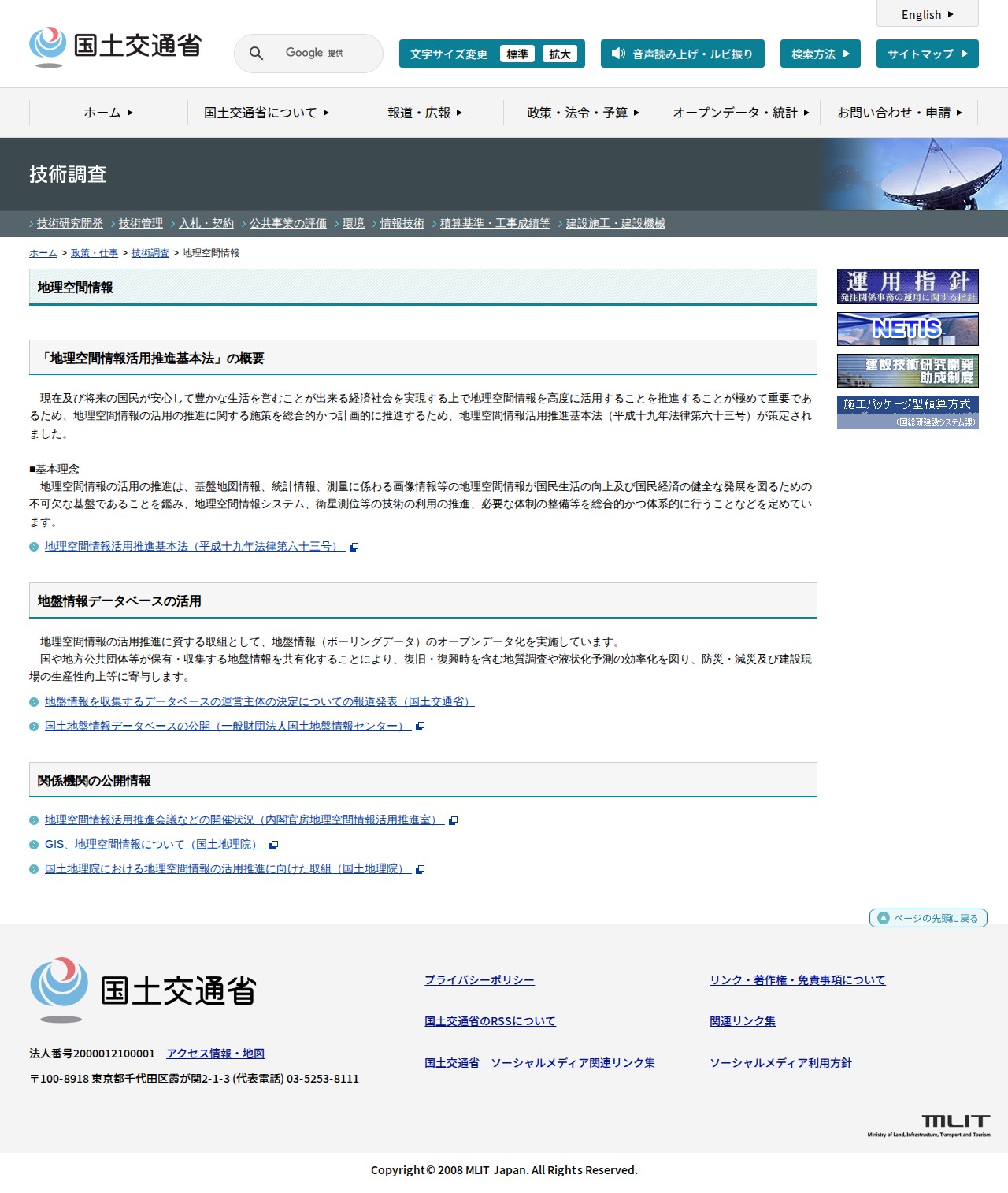 技術調査:地理空間情報 - 国土交通省 - 保存されたスクリーンショット
