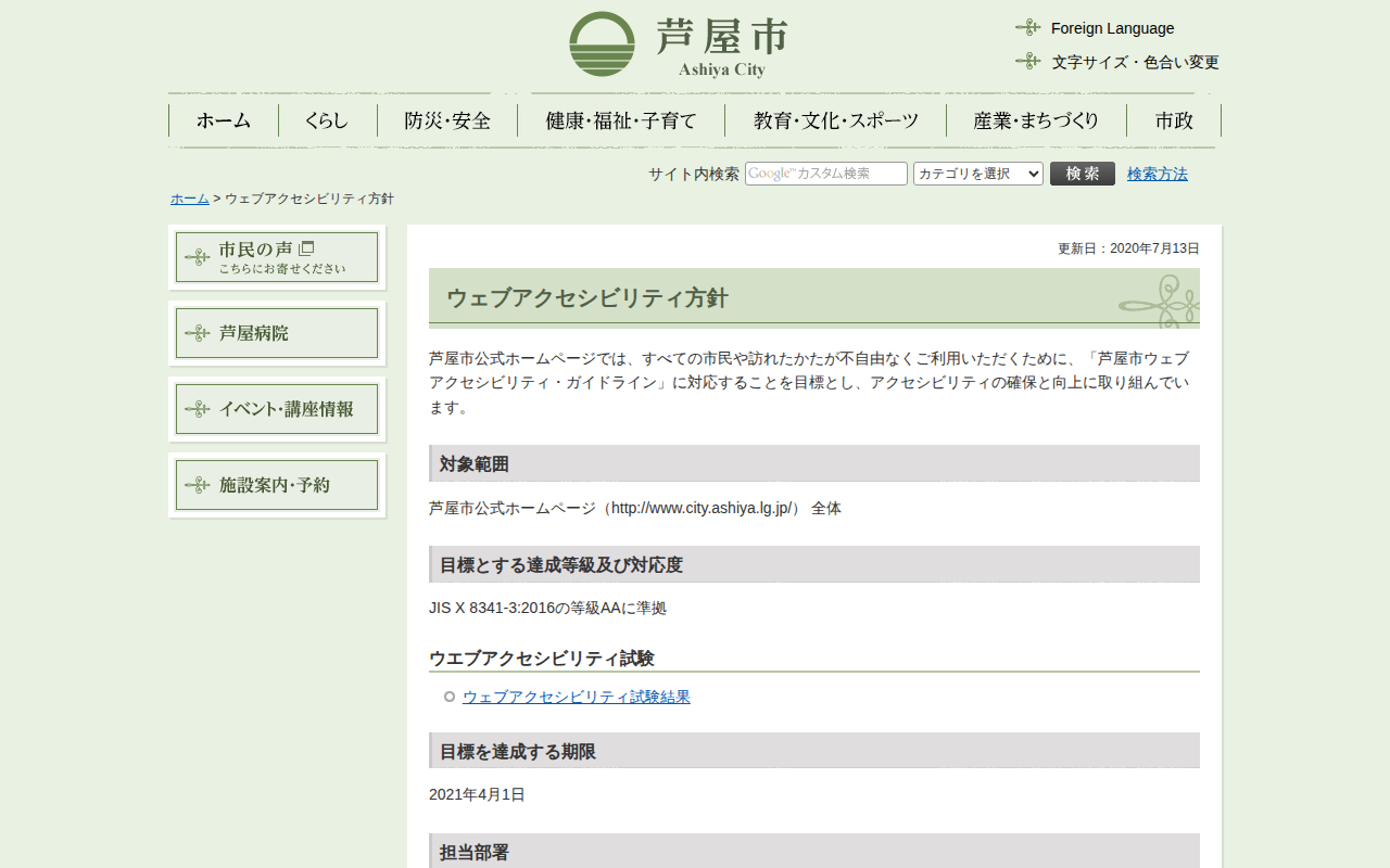芦屋市/ウェブアクセシビリティ方針
