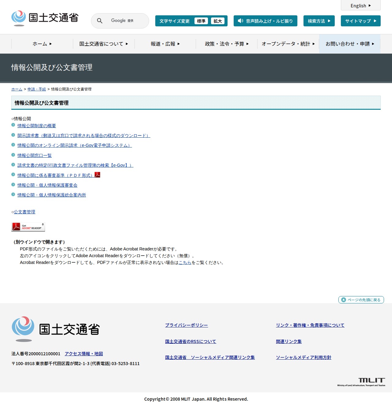情報公開及び公文書管理 - 国土交通省