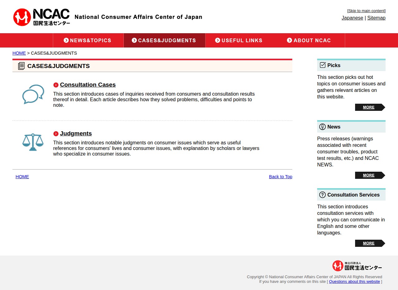 CASES&JUDGMENTS - National Consumer Affairs Center of JAPAN - - 保存されたスクリーンショット