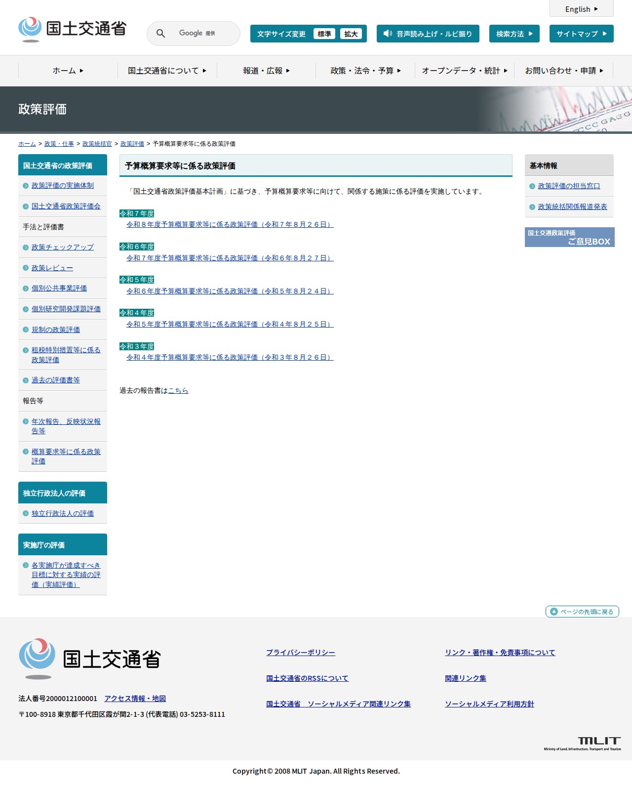 政策評価:予算概算要求等に係る政策評価 - 国土交通省