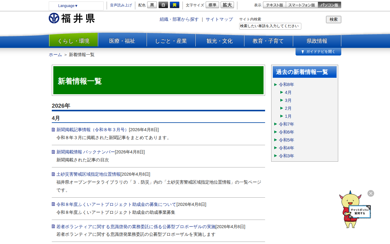 新着情報一覧 | 福井県ホームページ - 保存されたスクリーンショット