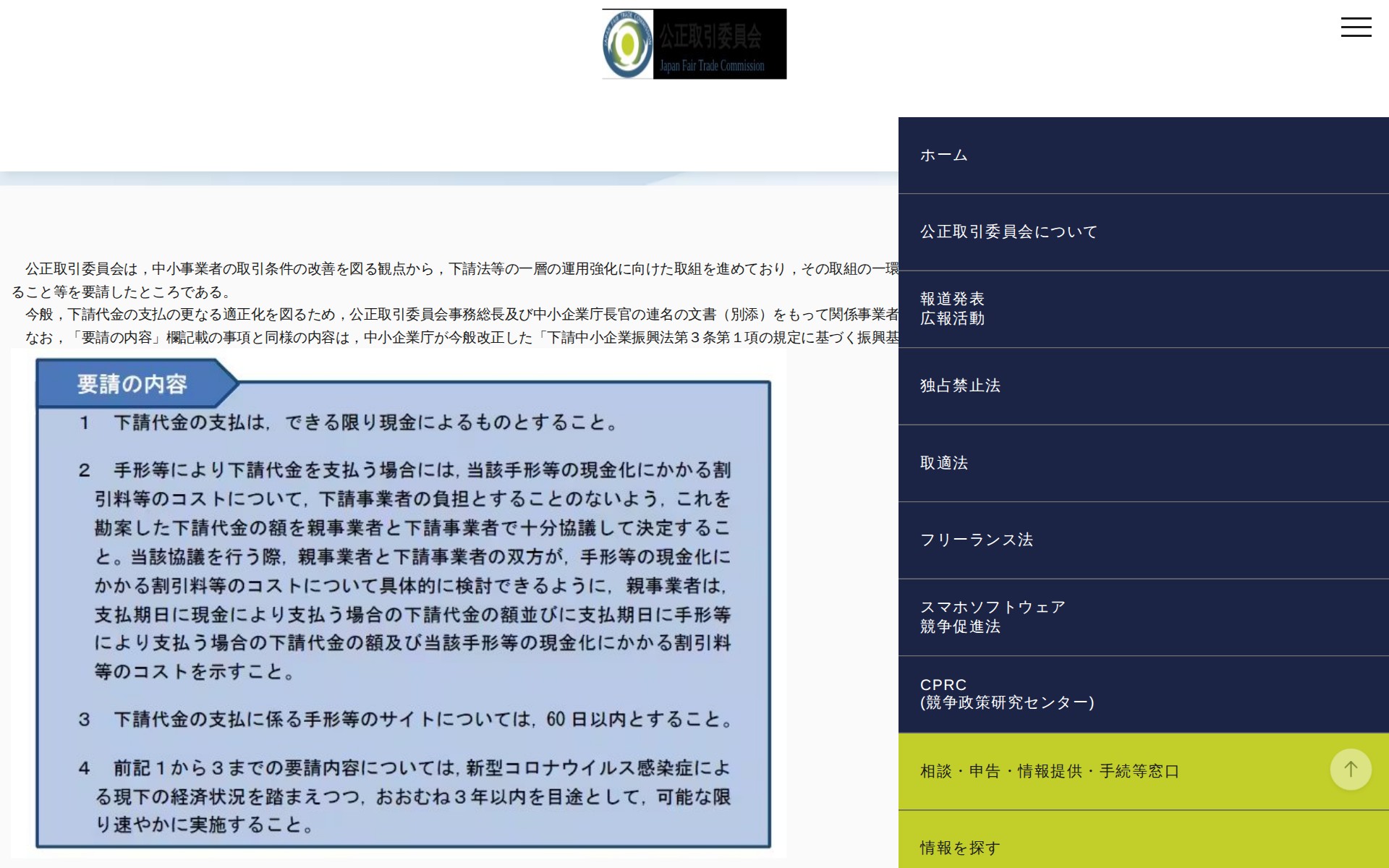(令和3年3月31日)下請代金の支払手段について | 公正取引委員会