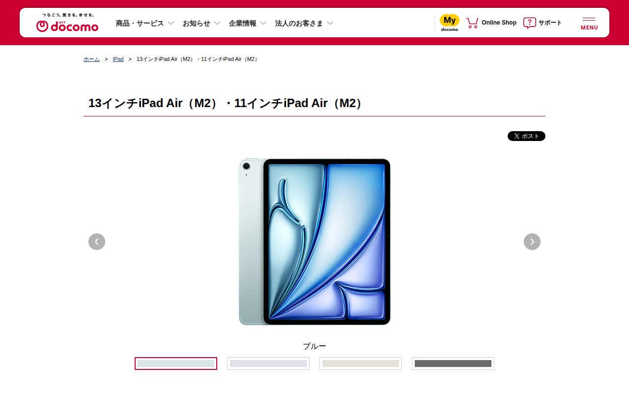 13インチiPad Air(M2)・11インチiPad Air(M2) | iPad | NTTドコモ - 保存されたスクリーンショット