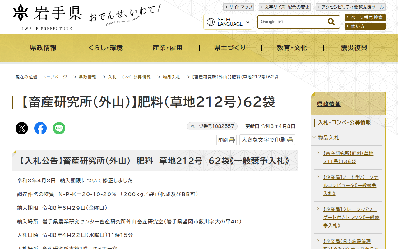 https://www.pref.iwate.jp/kensei/nyuusatsu/buppin/1082557.html2026年4月8日 19:00 JST•アーカイブページ・viewer・ダウンロードは、この保存版を基準に表示されます。