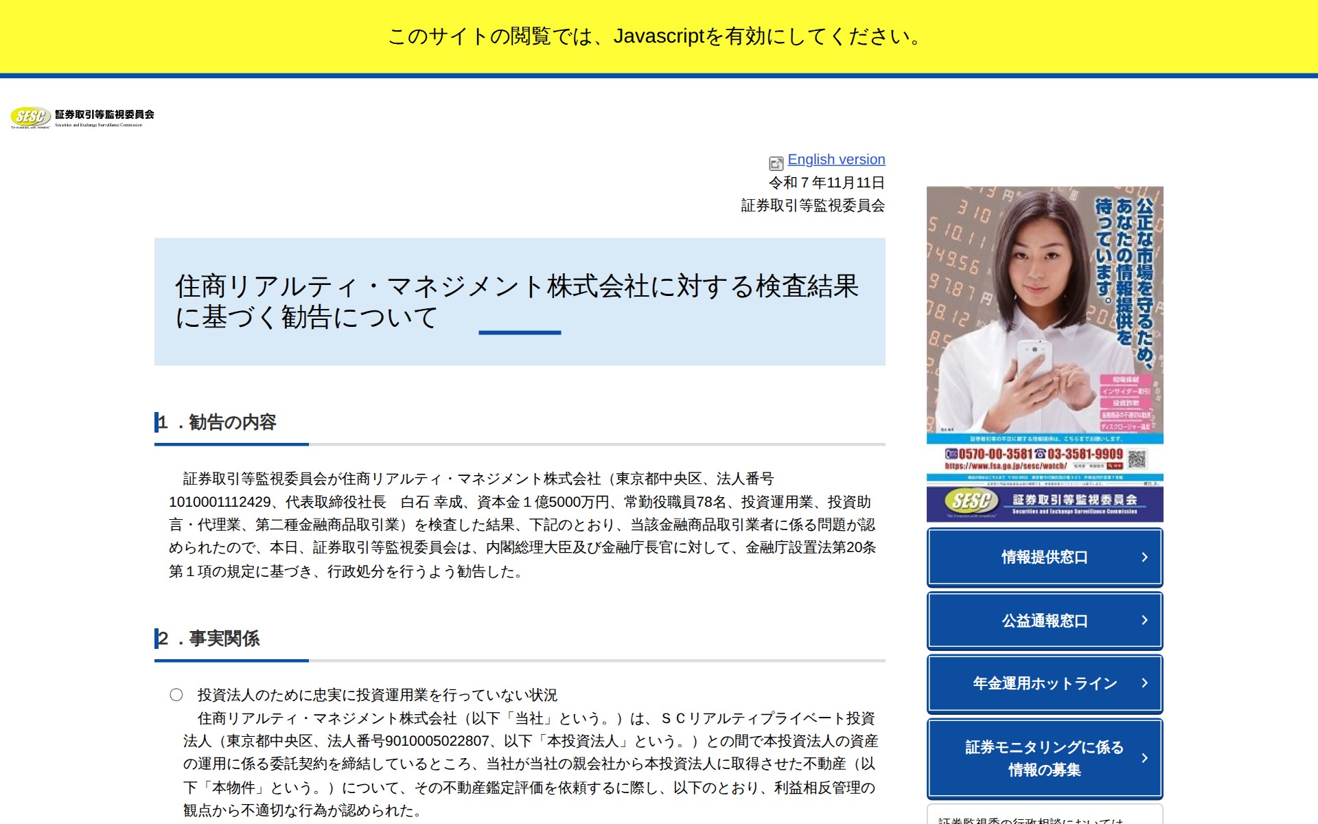 https://www.fsa.go.jp/sesc/news/c_2025/2025/20251111-1.html2026年4月5日 21:30 JST•アーカイブページ・viewer・ダウンロードは、この保存版を基準に表示されます。