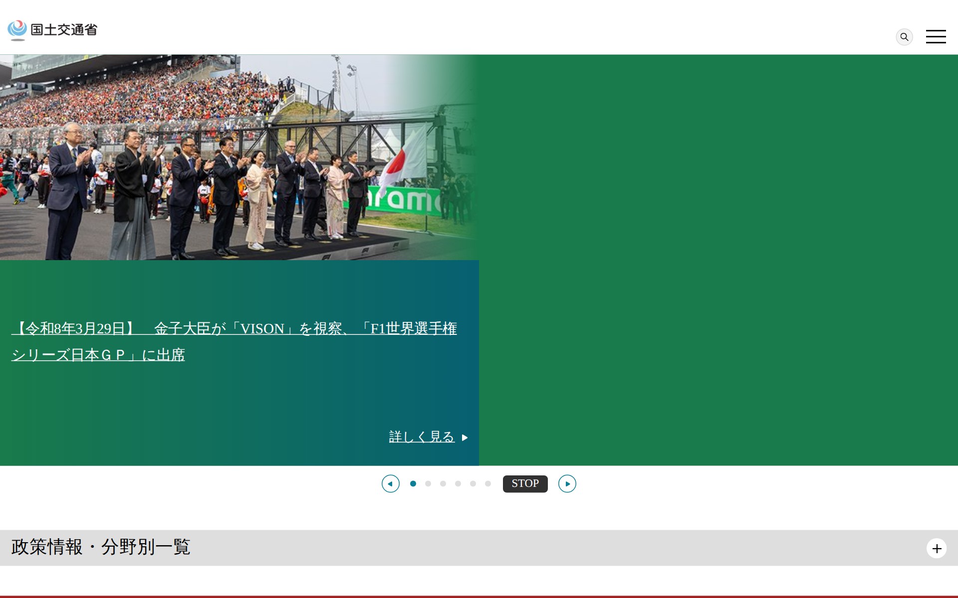 このページは、日本の国土交通省の公式ウェブサイトです。省庁の概要、報道・広報、政策・法令・予算に関する情報を提供しています。最新のニュースとして、金子大臣による視察や国際的な活動の報告が掲載されています。省庁発足25周年を迎え、政策動向を紹介する特集も展開中です。災害・防災情報、採用情報、報道発表など、多様な政策分野の情報を網羅しており、総合政策、運輸安全、公共交通、土地・不動産、建設業、都市、水管理、道路、住宅、鉄道、物流、海事、港湾、航空などの各分野別情報へアクセス可能です。