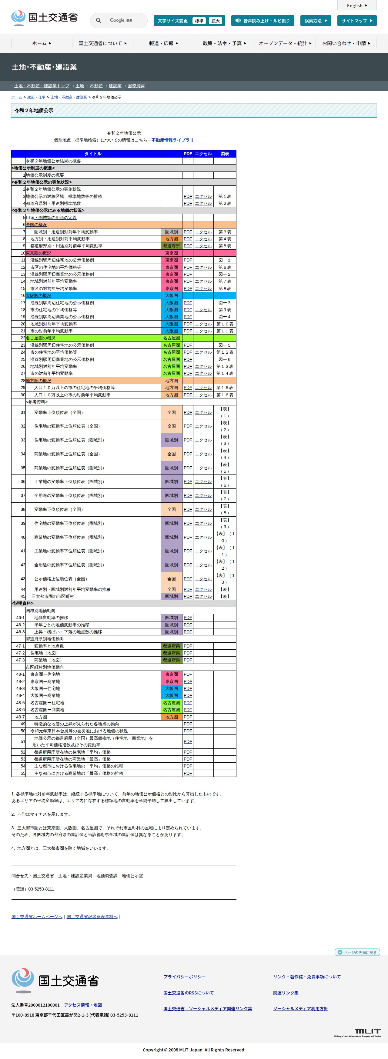 土地・不動産・建設業:令和2年地価公示 - 国土交通省