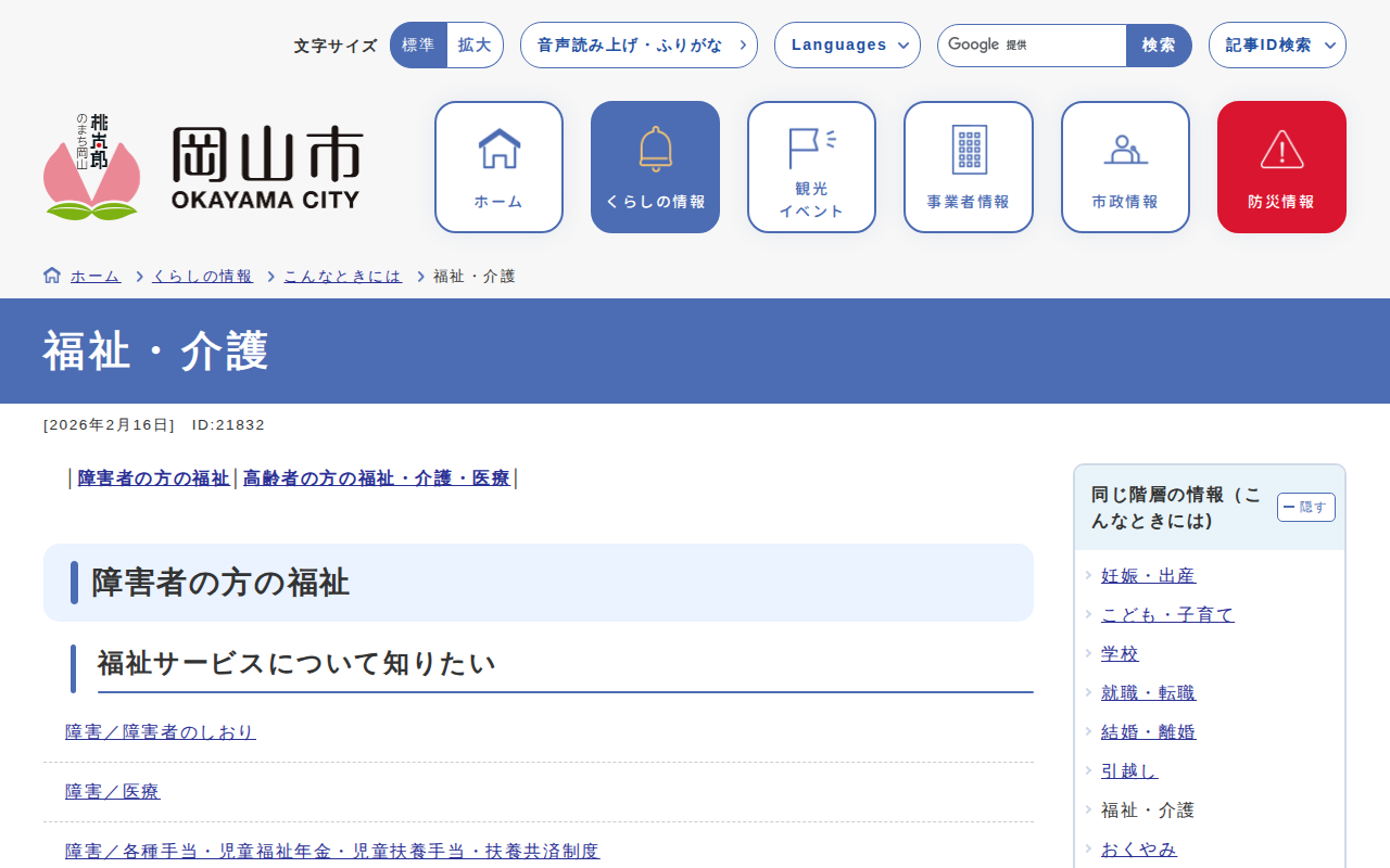 https://www.city.okayama.jp/kurashi/0000021832.html2026年4月9日 07:09 JST•アーカイブページ・viewer・ダウンロードは、この保存版を基準に表示されます。