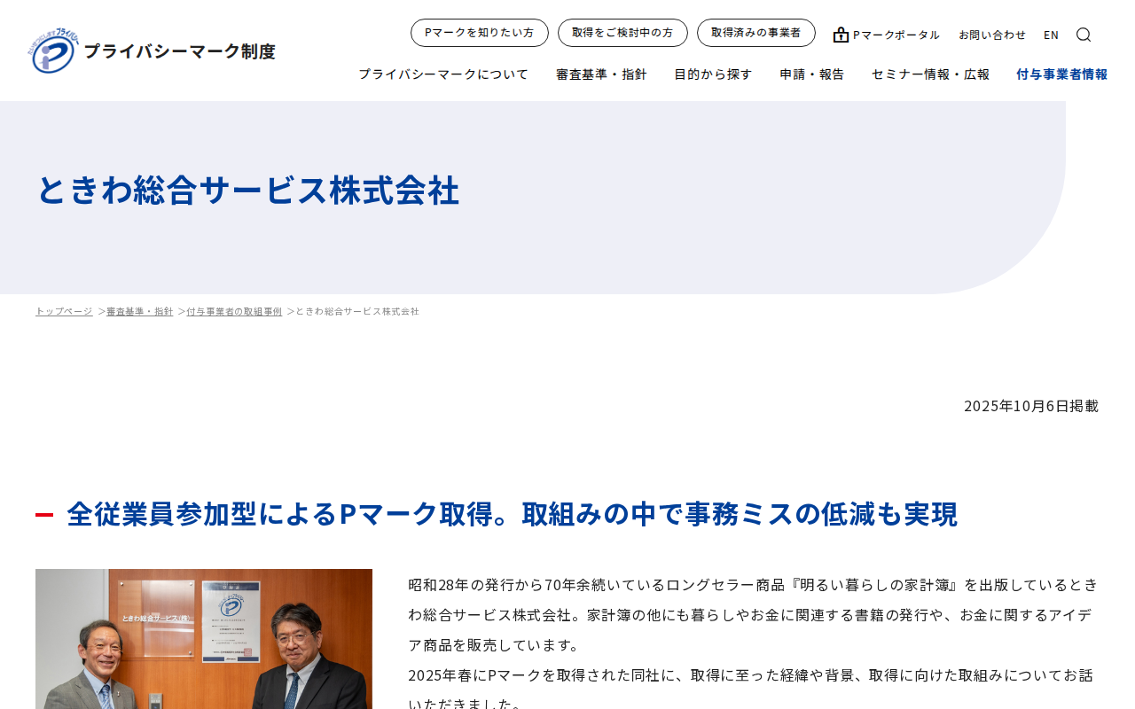 ときわ総合サービス株式会社|付与事業者の取組事例|一般財団法人日本情報経済社会推進協会(JIPDEC)