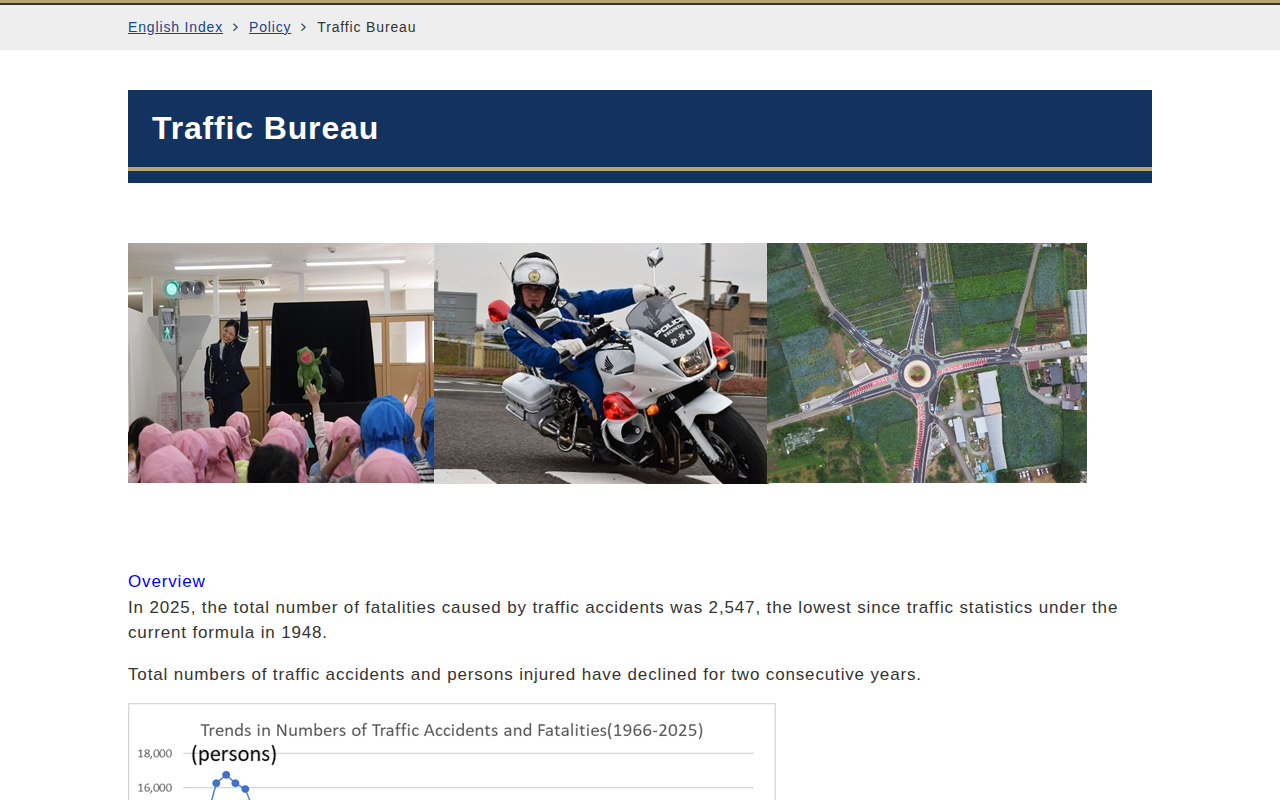 https://www.npa.go.jp/english/bureau/traffic/index.html2026年4月9日 09:04 JST•アーカイブページ・viewer・ダウンロードは、この保存版を基準に表示されます。